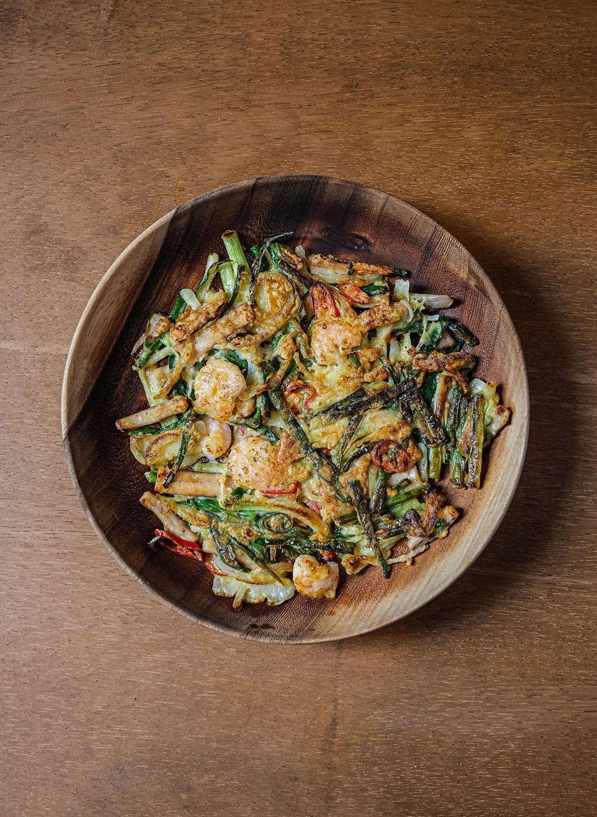 With Fried Vegetables, Shrimp and Egg